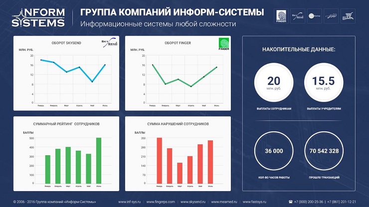 За более 10 лет существования группа разработала и вывела на рынок множество проектов: встраиваемая ОС «FastSYS», терминал и ПО «FastPay», программный комплекс «Система приема платежей SkySend», Тонкий клиент “SlimStation”, программный комплекс “Платежная система FINGER”, блок расчетов отпечатком пальца FINGER, программный комплекс «Мой Доктор».