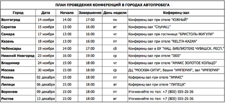В каждом городе по маршруту следования АВТОПРОБЕГА SKYSEND будут проводиться конференции, основными темами которых выступают: