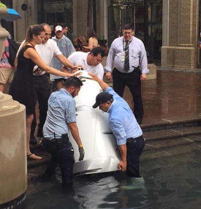 17 июля в Вашингтоне в торговом центре «Harbour» произошла внештатная ситуация с роботом-охранником, который по непонятным причинам заехал в открытый фонтан и затонул.