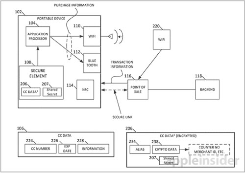Компания Apple получила патент на осуществление платежей со смартфона. В отличие от других подобных систем, в этой для дополнительной защиты задействована технология, схожая с Secure Enclave в чипсете A7.
