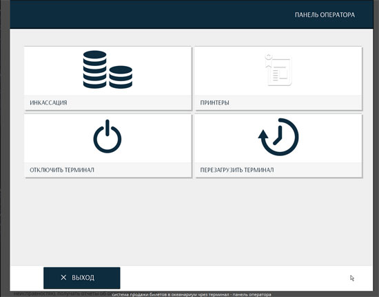 Обслуживание терминалов не представляет особой сложности. В специальном разделе системы оператор может производить инкассацию и пополнение купюроприемника, получать x- и z- отчеты с фискальных регистраторов, а также перезагружать и выключать терминал. Стандартными техническими операциями являются извлечение купюр и замена кассовой ленты.