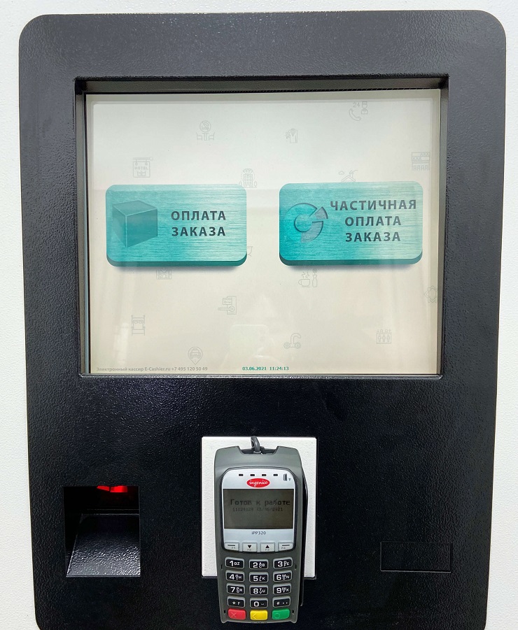 Для удобства клиентов магазина «Плитка Рядом» оплатить покупки в электронном кассире можно наличными деньгами или банковской картой. Терминал «Электронный кассир» оснащен кассовым аппаратом, поэтому покупатель получит кассовый чек, соответствующий требованиям законодательства РФ.