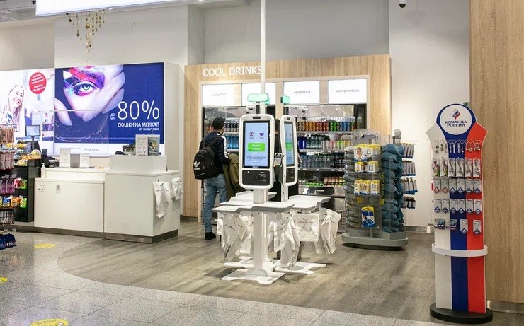 Флагманский магазин Sheremetyevo Travel Retail Heinemann поддержал цифровизацию услуг в аэропорту и принял решение поставить в кассы самообслуживания для своих покупателей. Важно было подобрать киоск, который будет органично вписываться в современный магазин, при этом занимать небольшую площадь торгового зала и иметь большой дисплей покупателя.