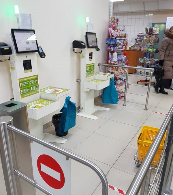 Программное обеспечение «SelfPoint» позволило с лёгкостью интегрировать КСО в действующую IT-инфраструктуру супермаркета и установить необходимые дополнительные модули. В том числе и дополнительную систему контроля оплаты, осуществляемую за счёт стойки со сканером чека и модуля пропускного контроля.