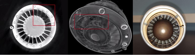 Целью ученых Smart Engines являлась томография реактивного двигателя целиком – без разбора на детали – и за одно измерение на серийной промышленной установке. Исследователи Smart Engines предложили комплексное решение проблемы – использование промежуточных “компромиссных” энергий излучения ~450-600 кэВ, которые позволяют реконструировать как более плотные, так и менее плотные детали, а также высокопроизводительных алгоритмов компьютерной томографии для коррекции возникающих при этом искажений.