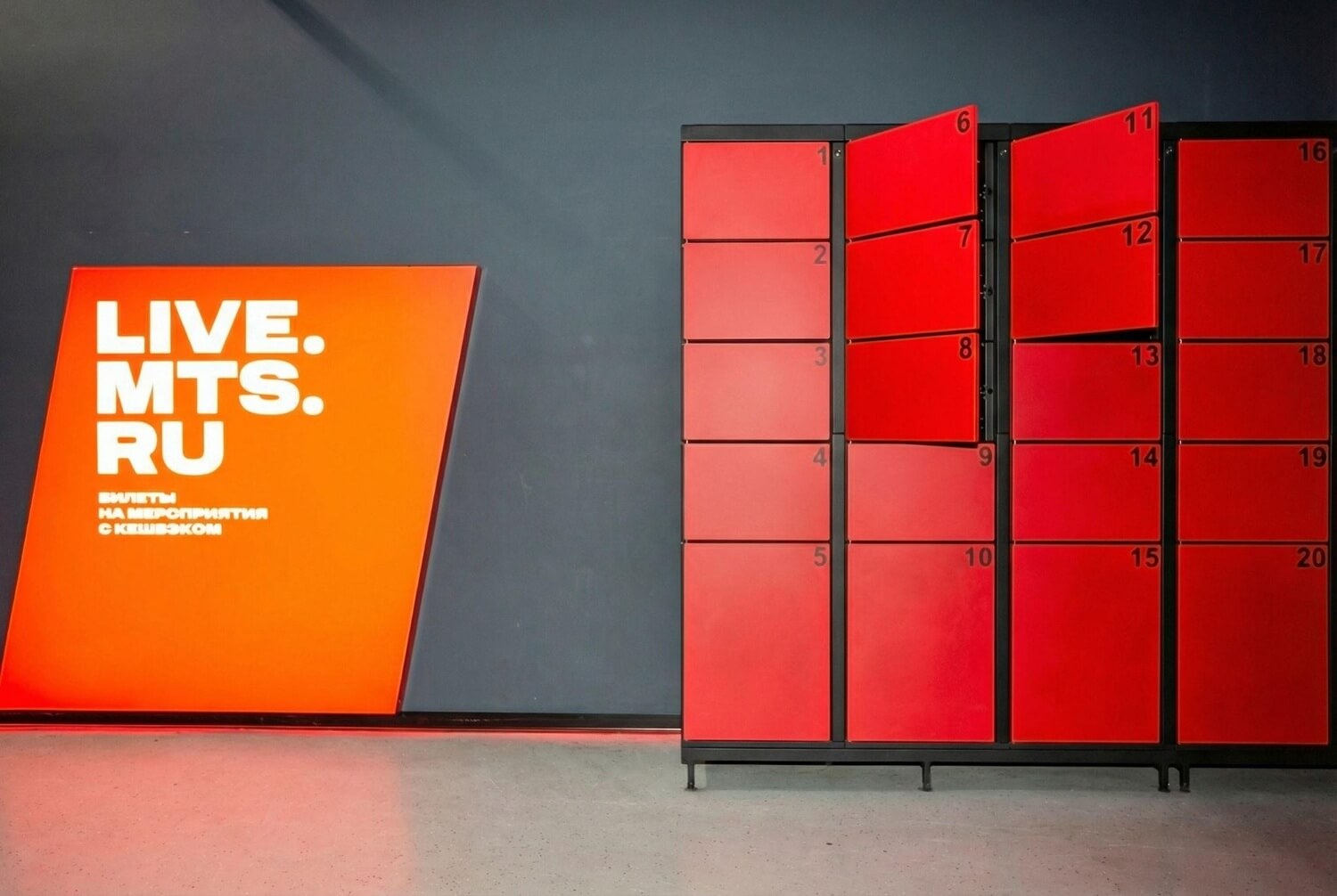 В МТС Live Холл реализована платная автоматическая камера хранения LockerBox, рассчитанная на самостоятельное использование посетителями и стабильную работу во время массовых мероприятий.