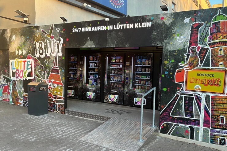 В немецком городе Росток открылся круглосуточный вендинговый магазин Lütten Box, который предлагает широкий ассортимент товаров от теста для пиццы до тестов на беременность и туалетной бумаги.