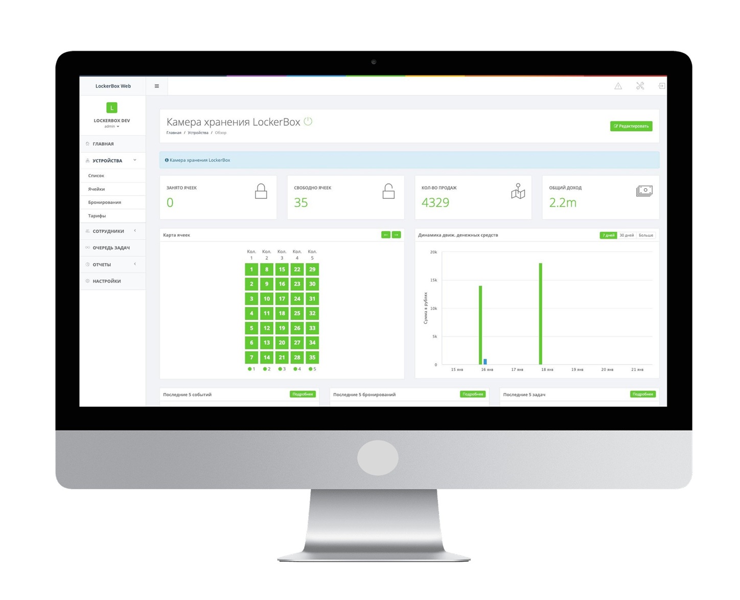 Работа всей системы координируется специализированным ПО LockerBox для платных камер хранения. Это программное решение превращает набор металлических ячеек в полноценный смарт-сервис: